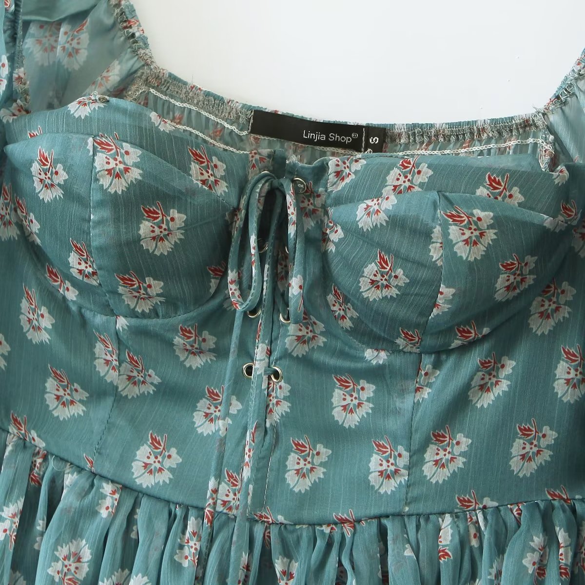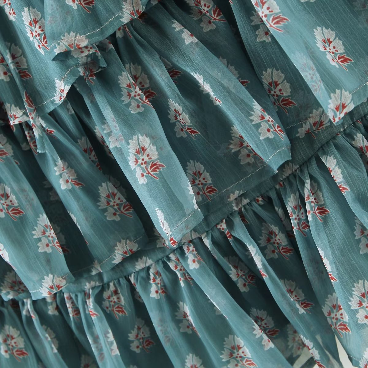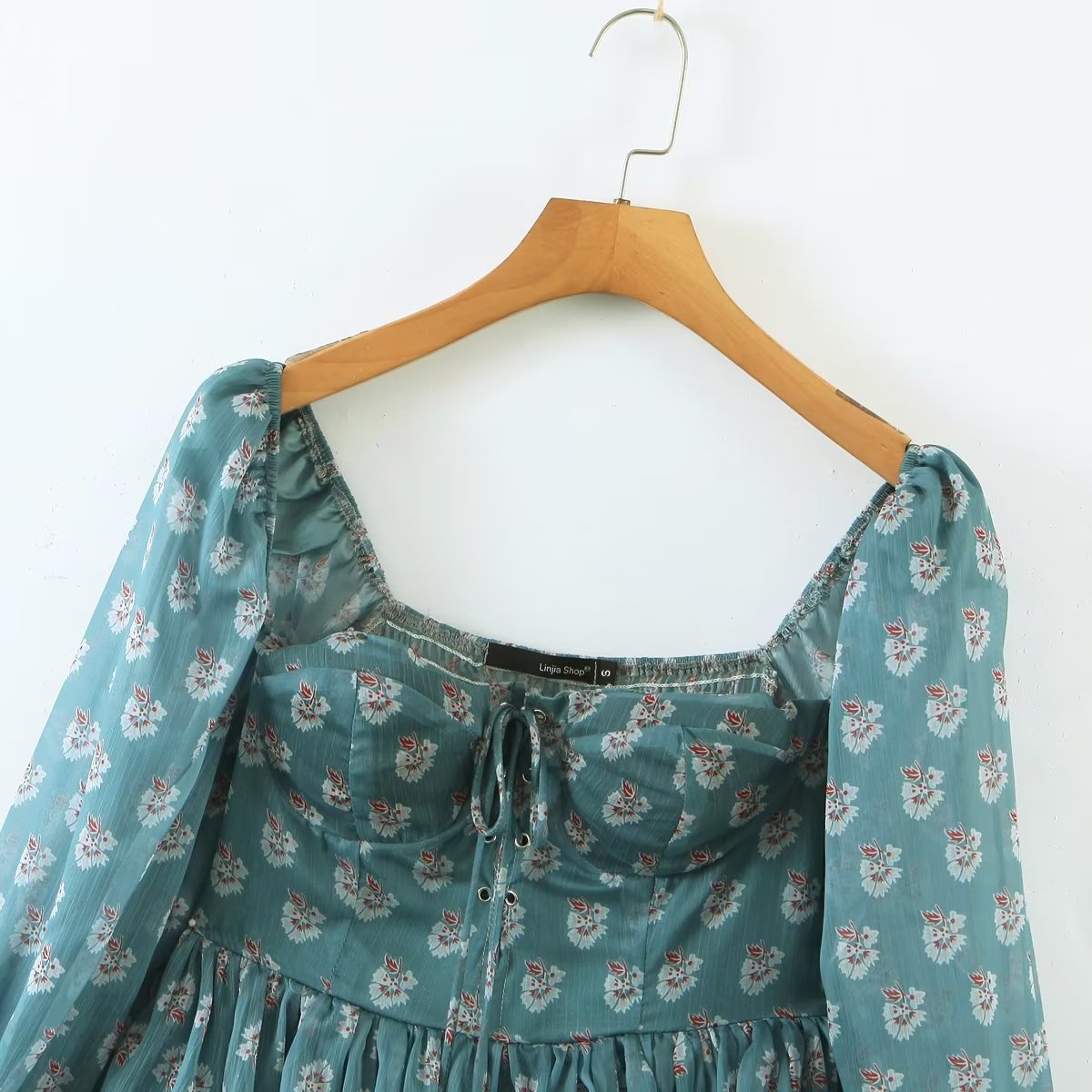 Overall, a Spring Green Floral Elegant Slim Fit Square Collar Puff Sleeve Chiffon Long Sleeve Dress Layers Tiered Dress would be a perfect choice for a spring occasion or a casual day out, exuding charm, elegance, and a sense of freshness.