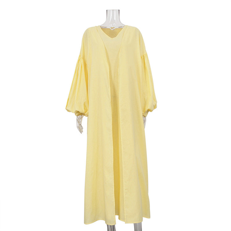 Spring Dresses 2024 | Boho Modest Puff Sleeve Cotton Robe Maxi Dress 2-piece set