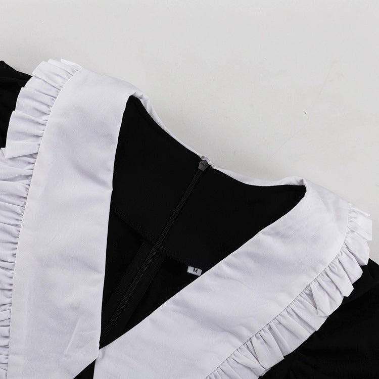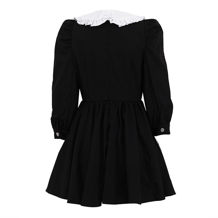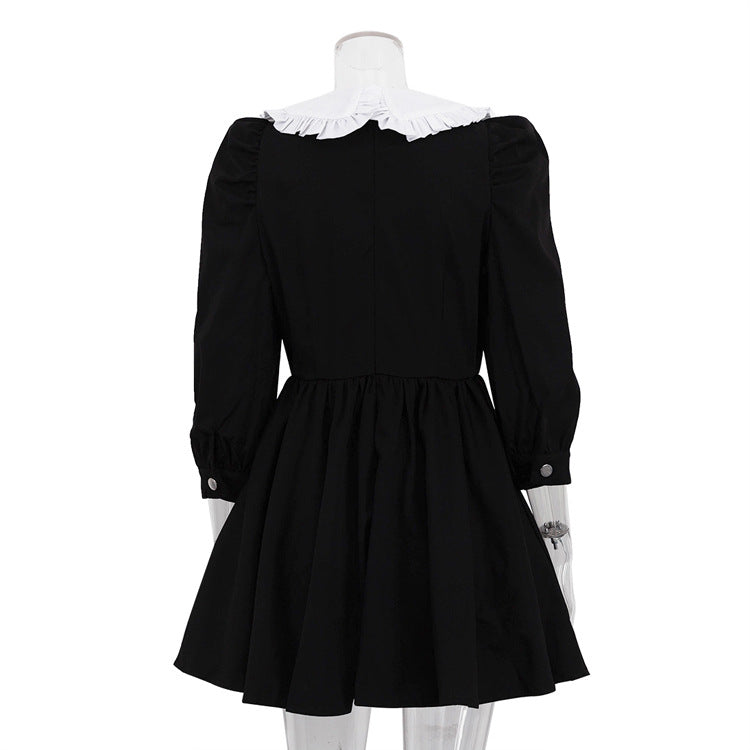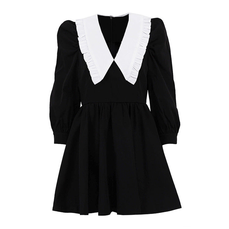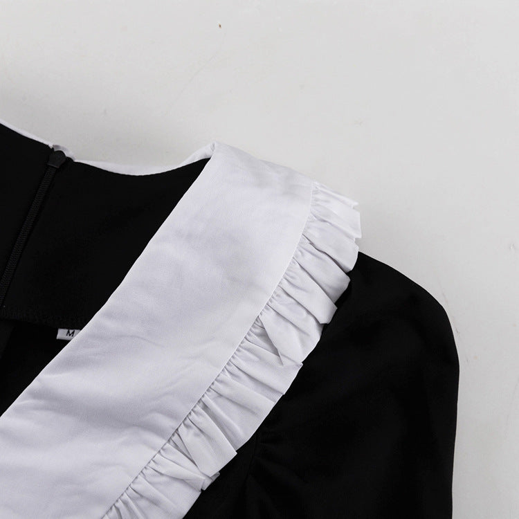 Spring French Black & White Contrast Doll Collar Dress – Timeless Elegance