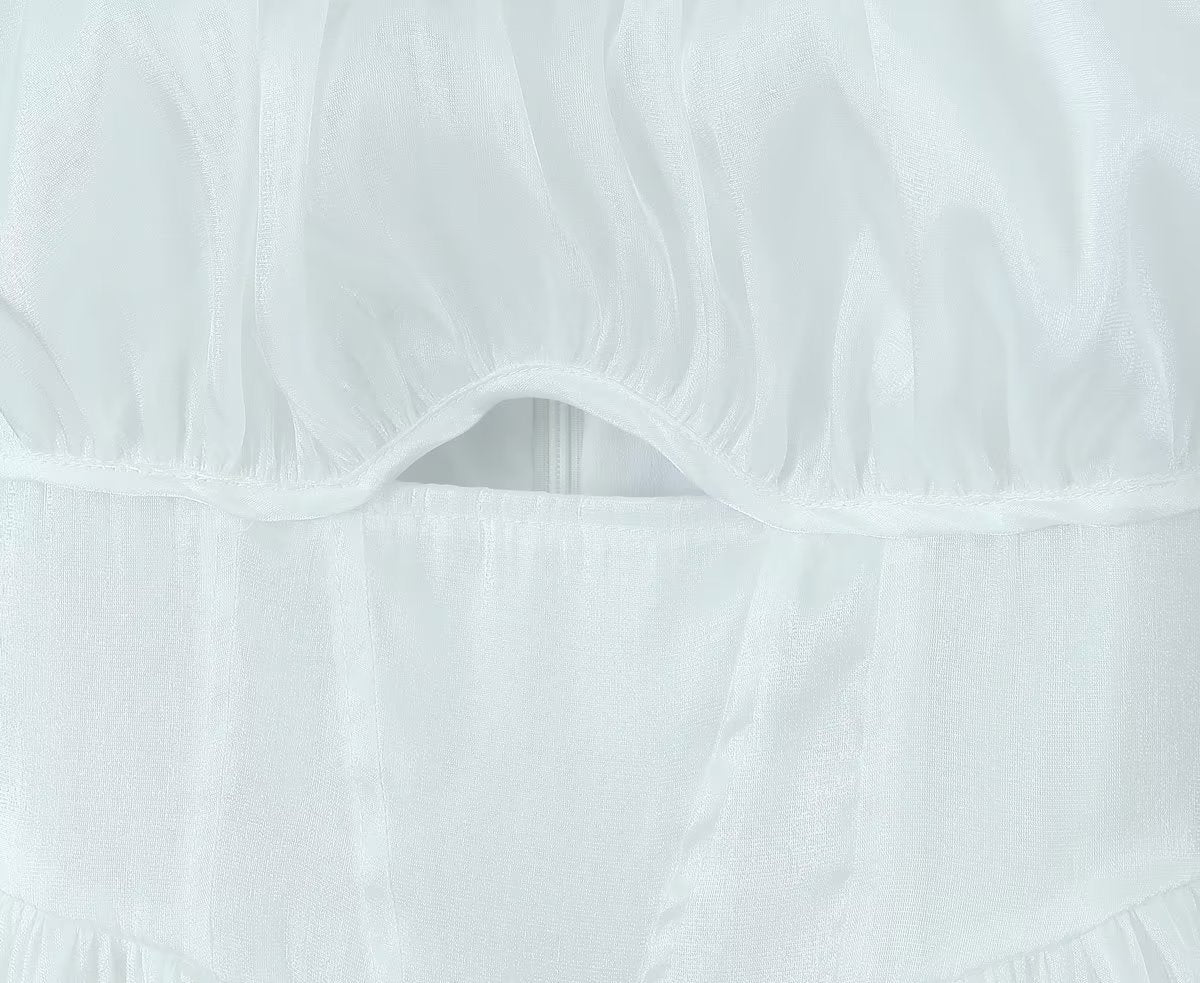 Overall, the white, tulle dress with a pleated tube top cami style is the perfect romantic dress for a spring outfit. It is feminine, elegant, and versatile, making it a great choice for a variety of occasions.