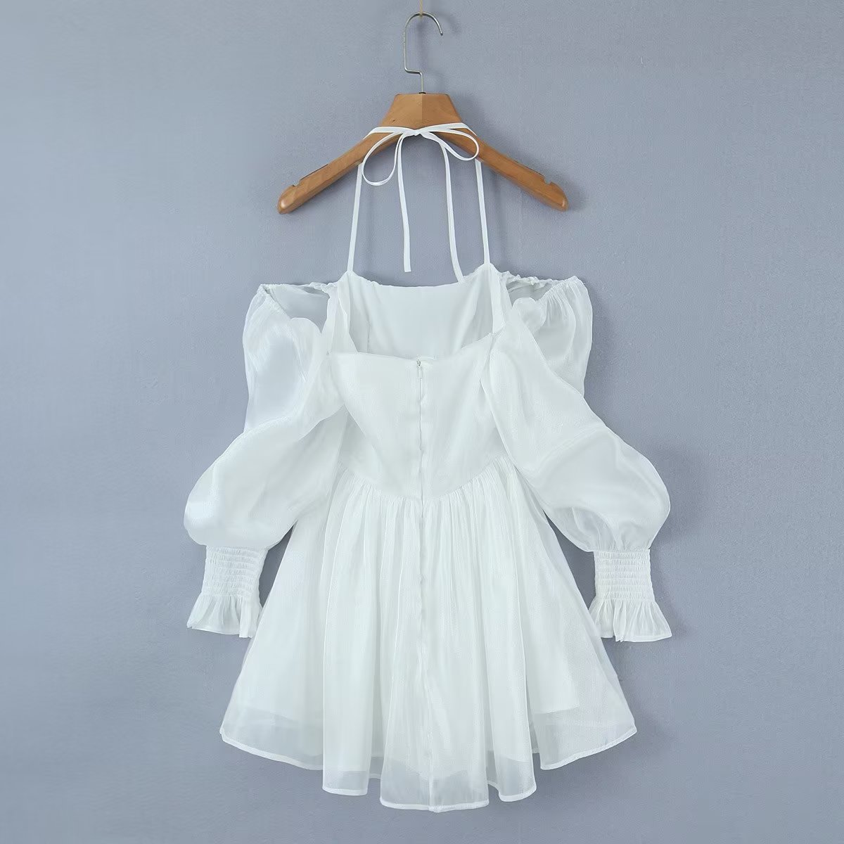 The white color of the dress adds to the romantic vibe of the outfit, creating a soft and ethereal look that is perfect for the spring season. The lightweight tulle fabric is perfect for warmer weather, allowing for breathability and ease of movement.