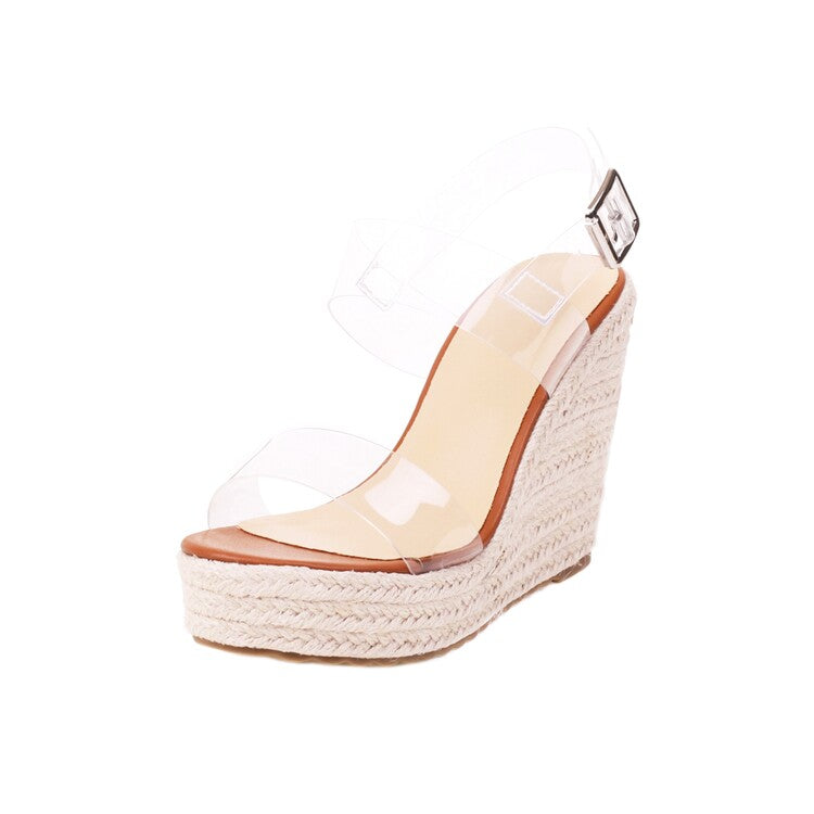 Spring 2022 New wedges, hessian rope, thick-soled straw woven platform shoes, fish mouth hollow, one-word buckle strap sandals