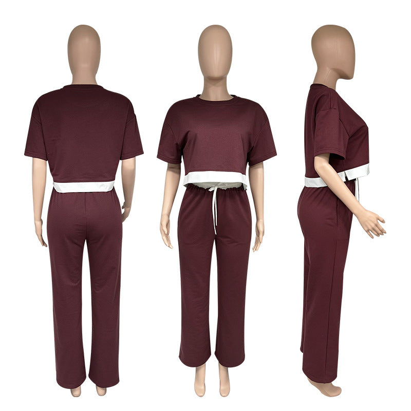 Stay cool, comfy, and effortlessly stylish with this Summer Solid Color Cotton 2-Piece Set. Featuring a relaxed-fit, short-sleeve sweater top with a crew neckline and color-block patchwork details, this set combines laid-back vibes with elevated casual style. Paired with high-rise wide-leg pants crafted from breathable cotton, the silhouette is both flattering and functional—perfect for lounging, errands, or spontaneous summer outings. With its minimalist aesthetic and easy fit, this outfit is a must-have in your 2025 casual wardrobe. Shop the ultimate chill look with TGC FASHION.