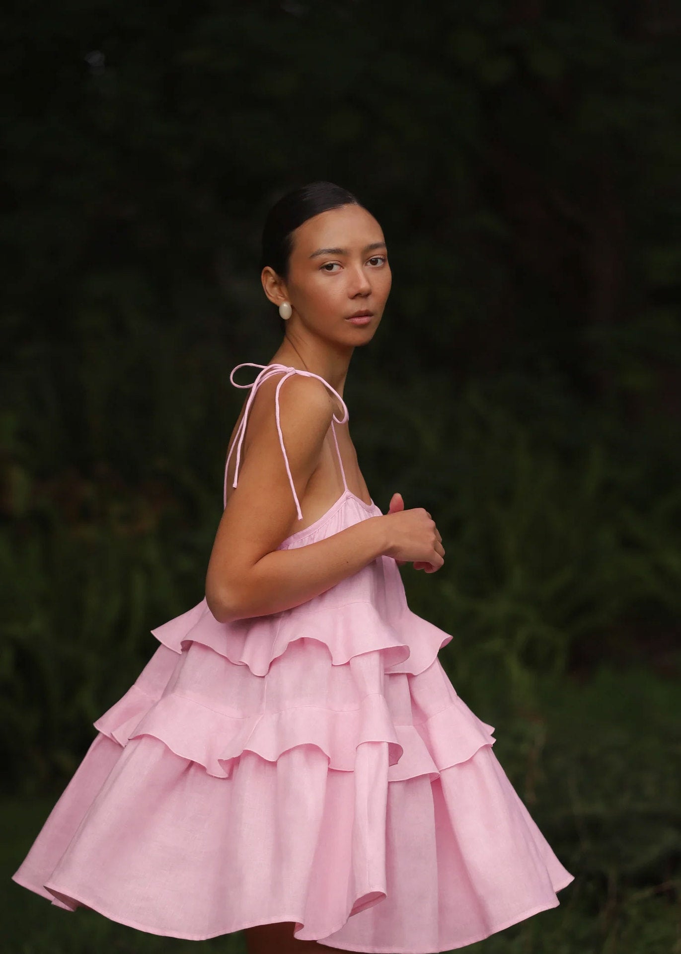 - Element: Ruffle,Tie,Backless