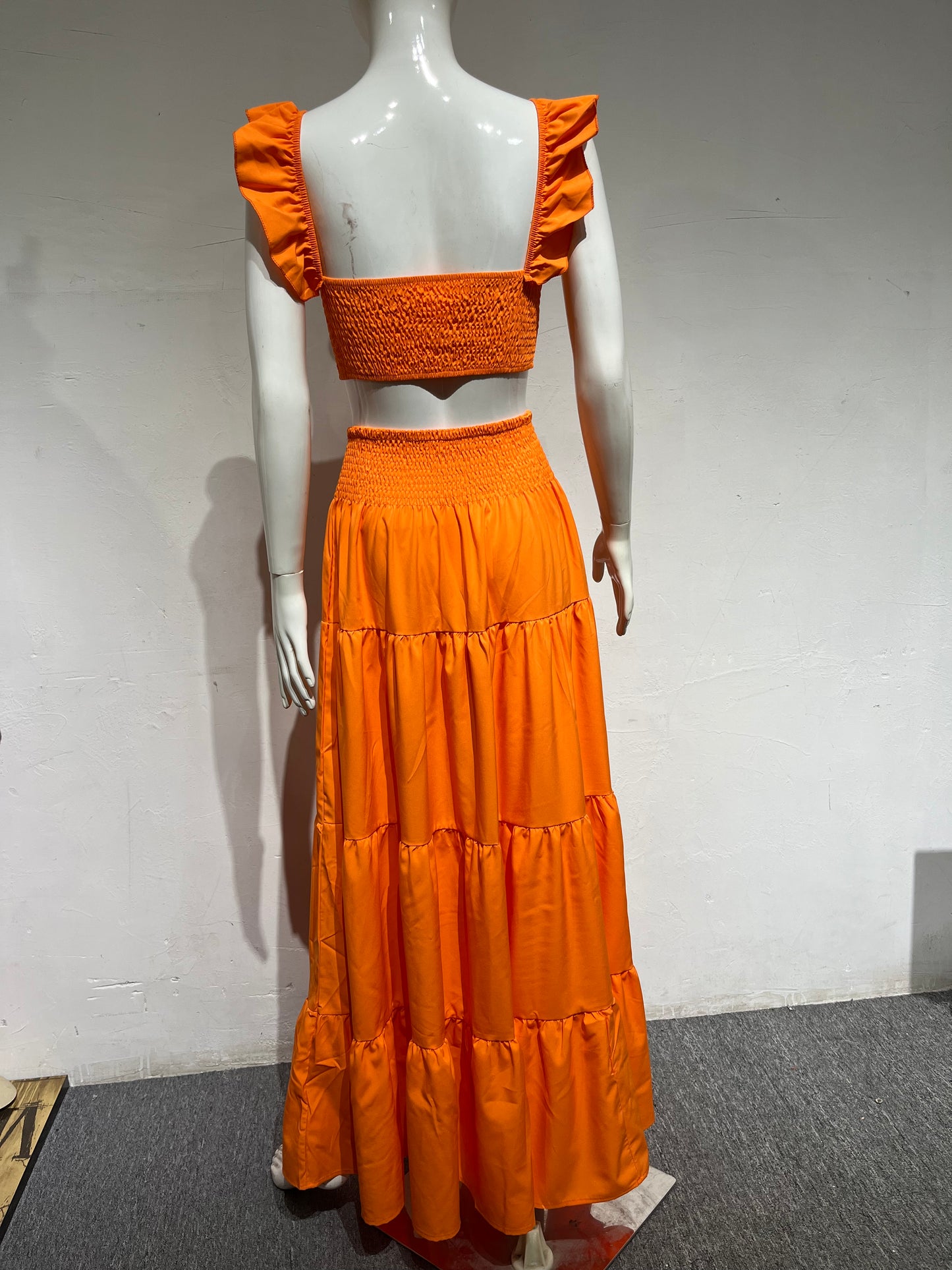 To complete the look, we've paired the skirt with a matching top. The top features a flattering silhouette that complements the skirt, creating a harmonious and stylish ensemble. The two pieces are designed to be worn together, offering a cohesive and effortlessly chic summer outfit.