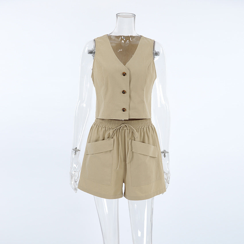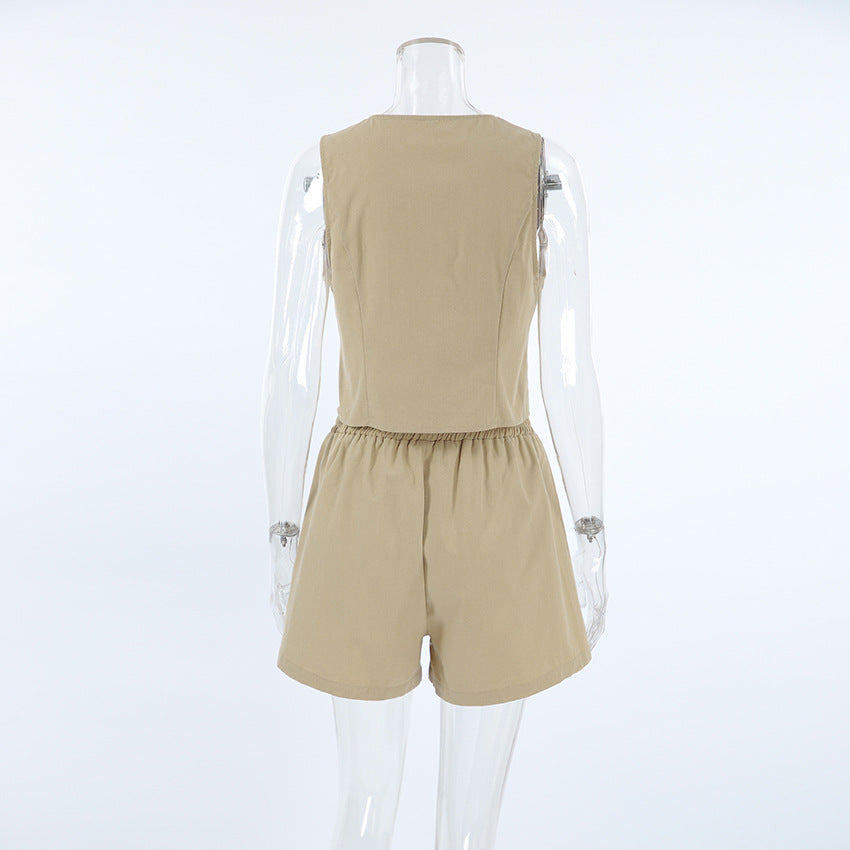 Chic Cotton Vest Shorts Outfit 2-piece Set
