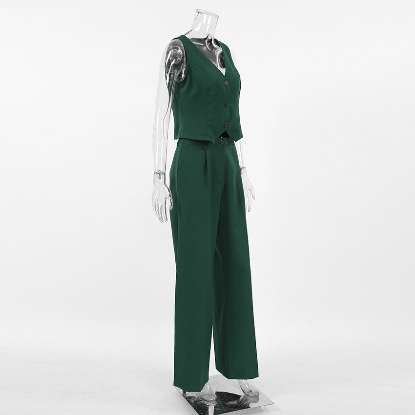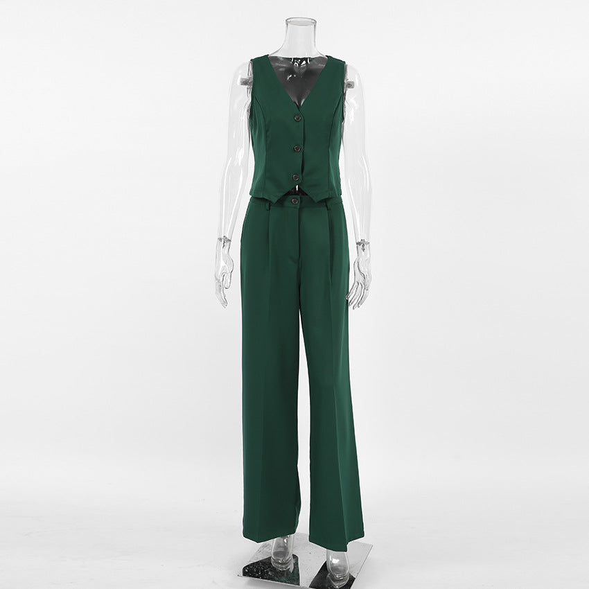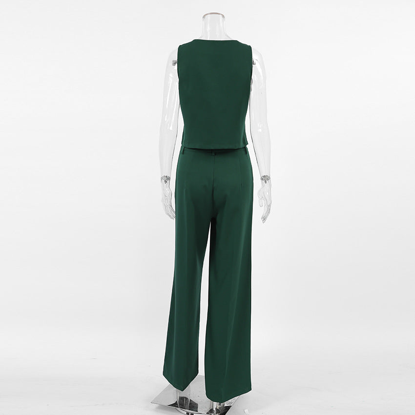 Elegant Business Casual Vest Wide Leg Pants Outfit 2-piece Set