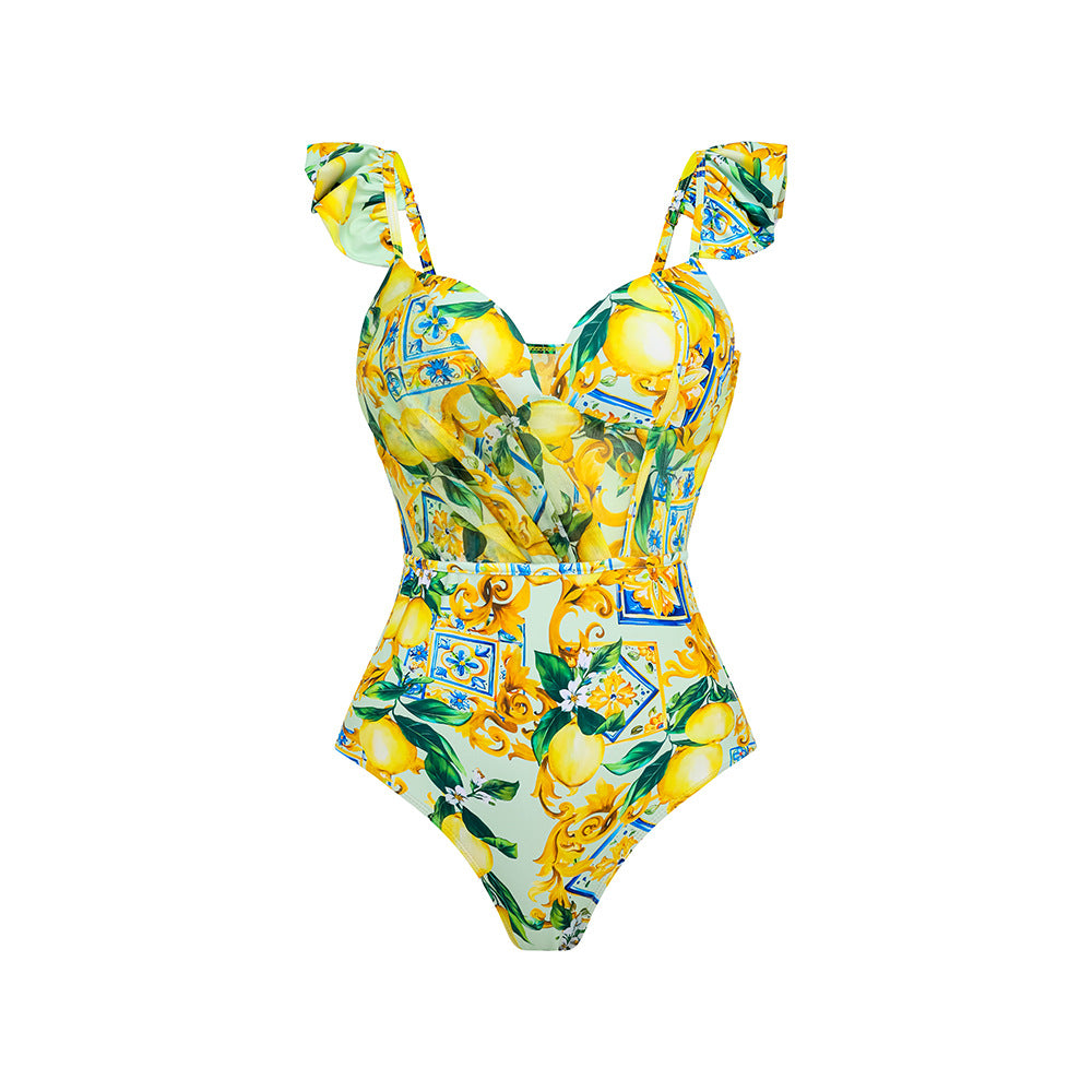 Summer Outfits 2024 | Lemon Drop Ruffles Bikini One Piece Swimsuit Skirt Outfit