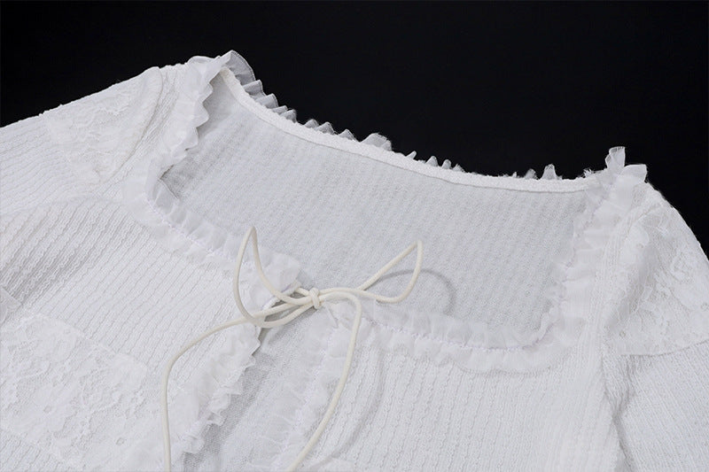 Summer Outfits 2024 | Princess Ruffles Cropped Cardigan Mini Shorts Lingerie Outfit 2-piece Set