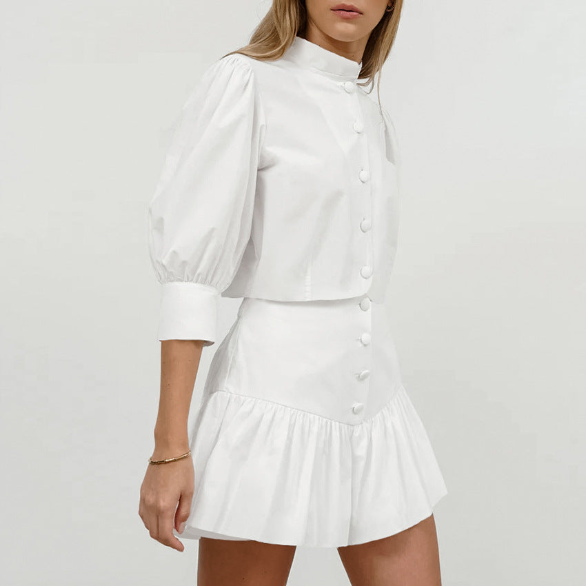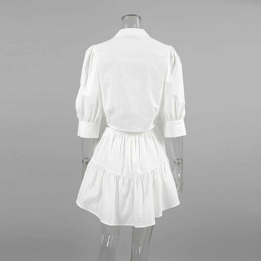 Summer Outfits 2024 | White Cotton Princess Aesthetic Crop Top Mini Skirt Outfit 2-piece Set