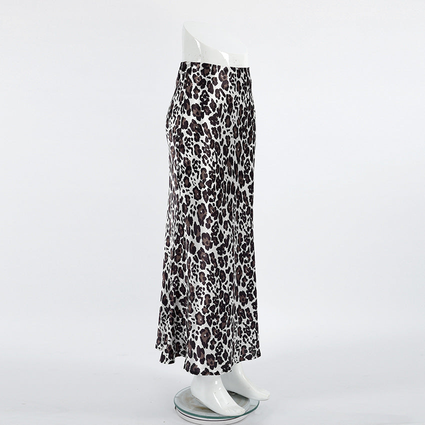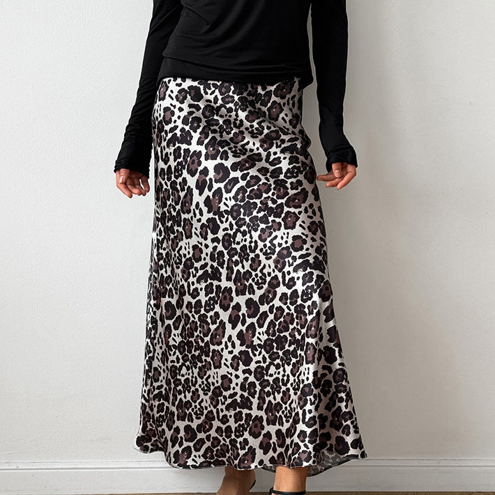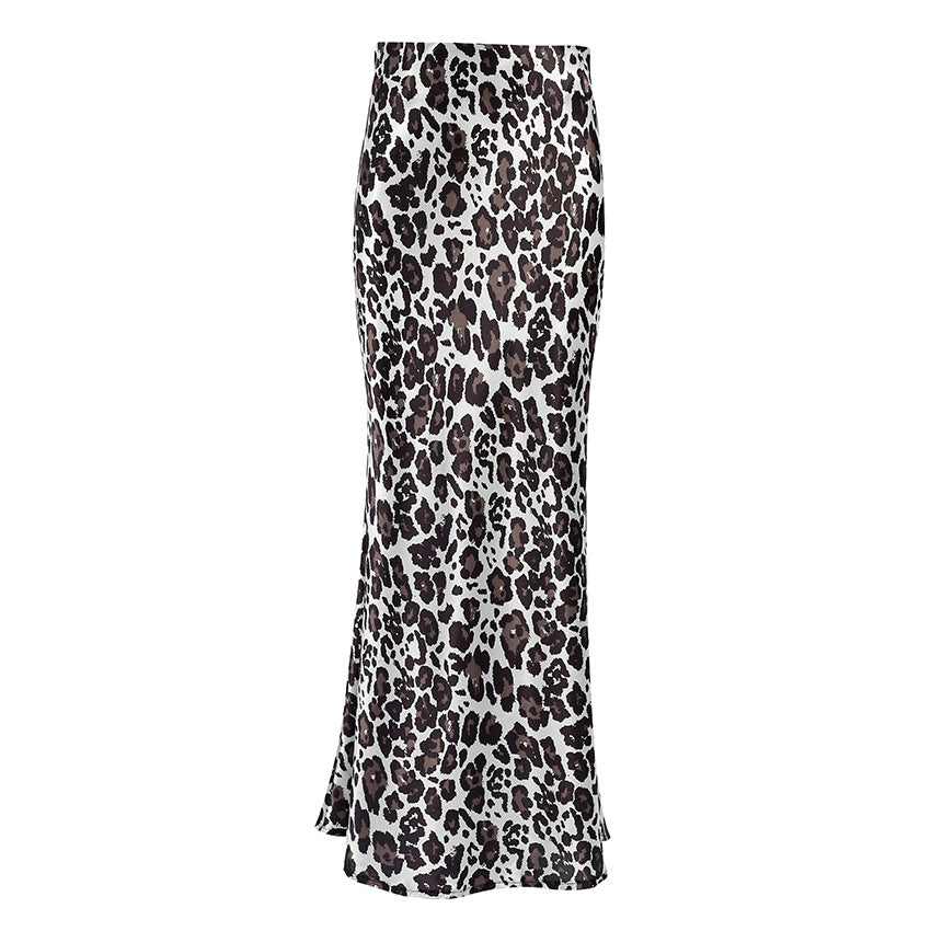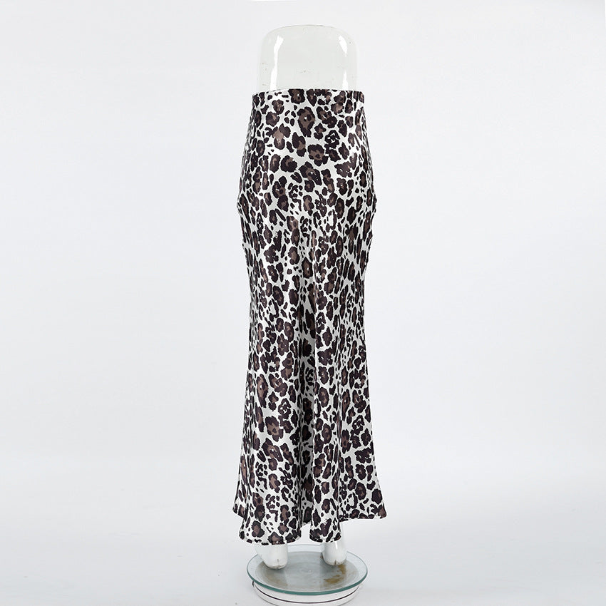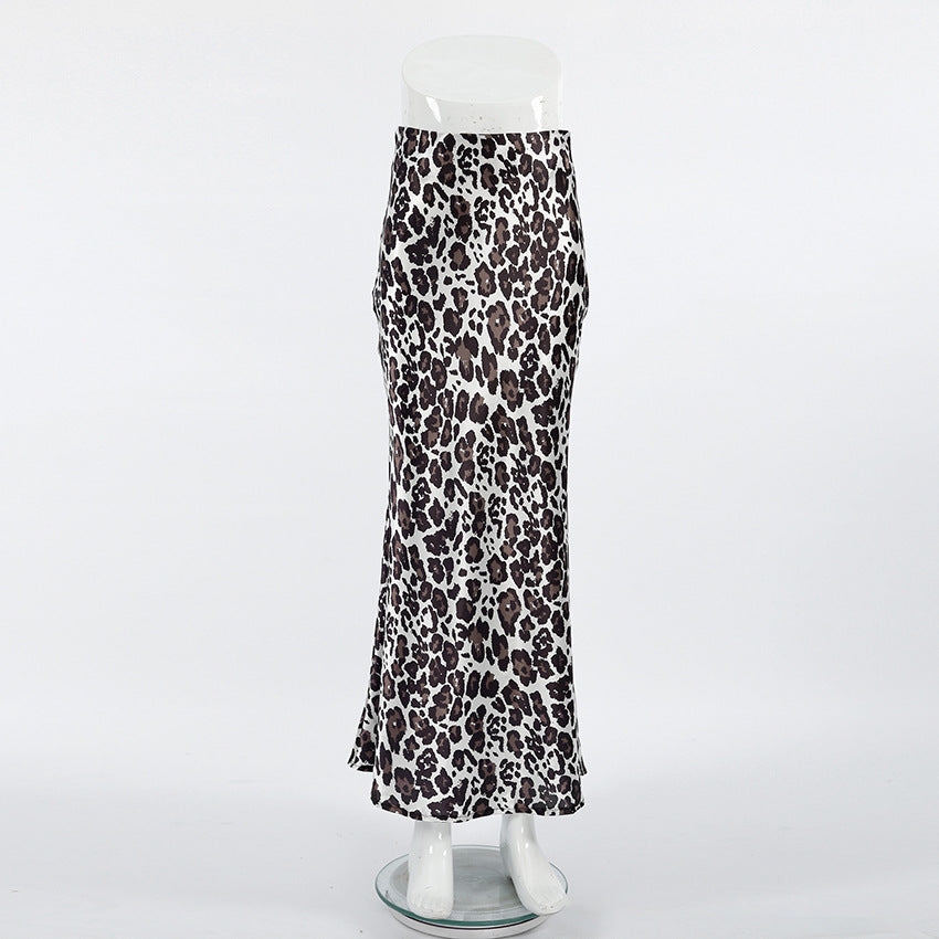TGC FASHION 2024 Fashion Fall Outfits, Gray Leopard Fishtail Satin Skirt
