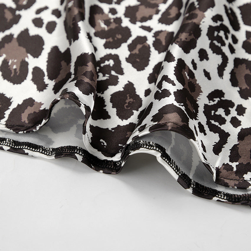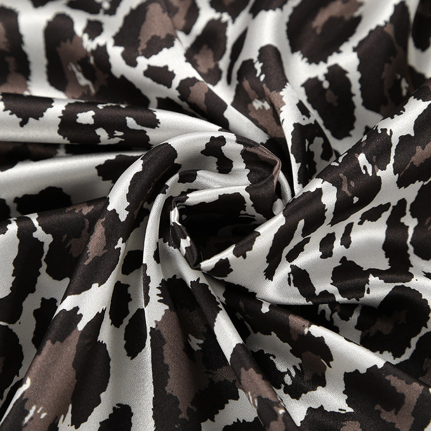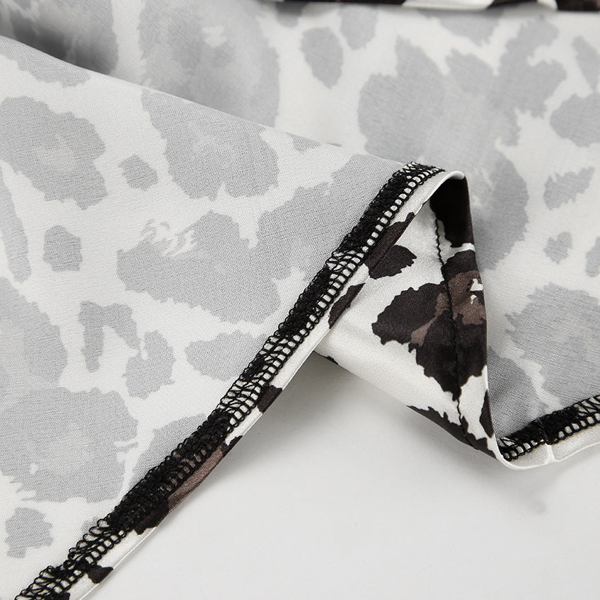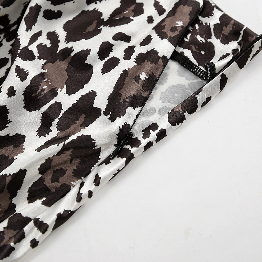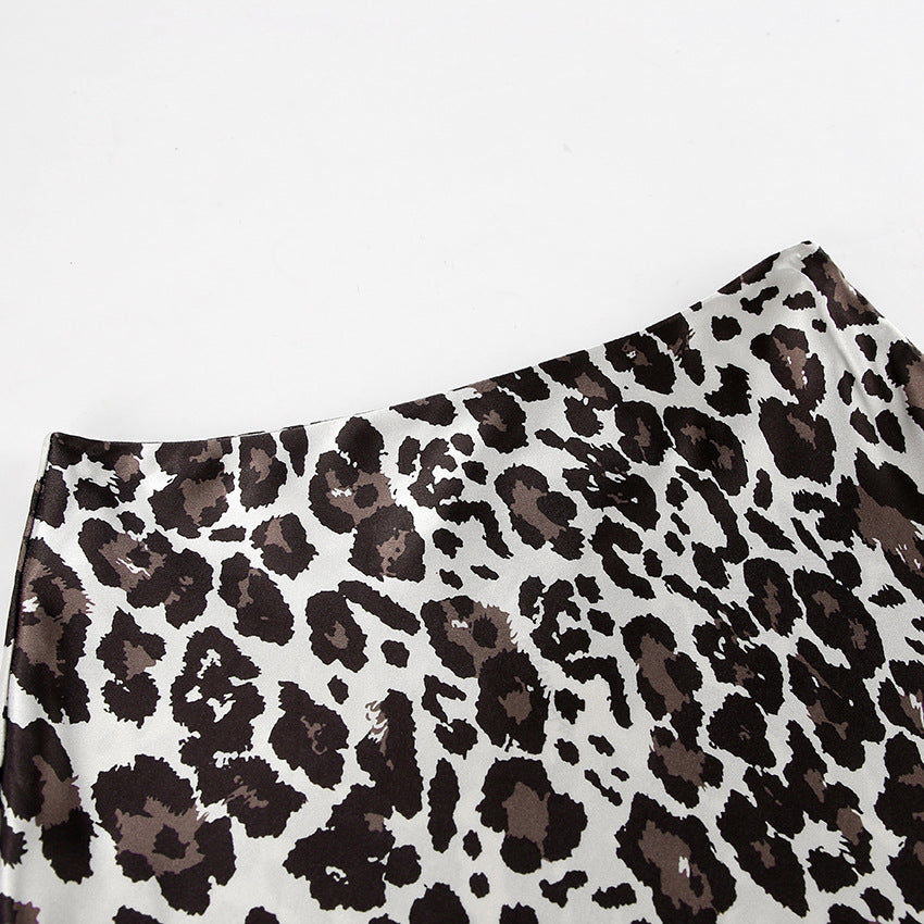 TGC FASHION 2024 Fashion Fall Outfits, Gray Leopard Fishtail Satin Skirt