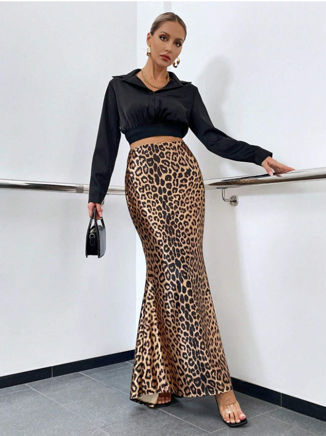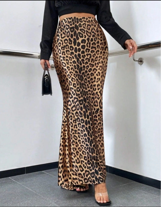 TGC FASHION 2024 Fashion Fall Outfits, Satin Maxi Leopard Fishtail Skirt