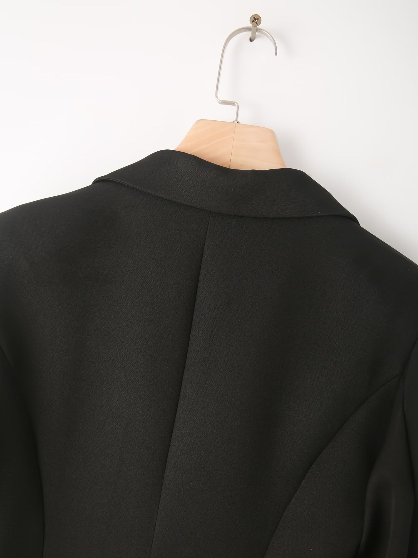 - One Button Closure: The blazer is designed with a single button closure, creating a sleek and streamlined silhouette. This design choice enhances its elegant and sophisticated look.