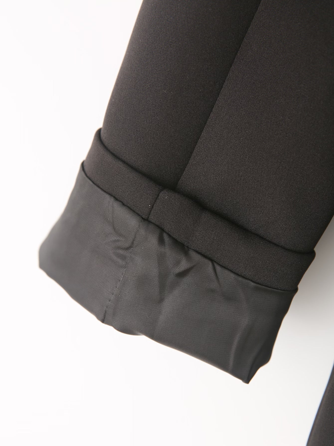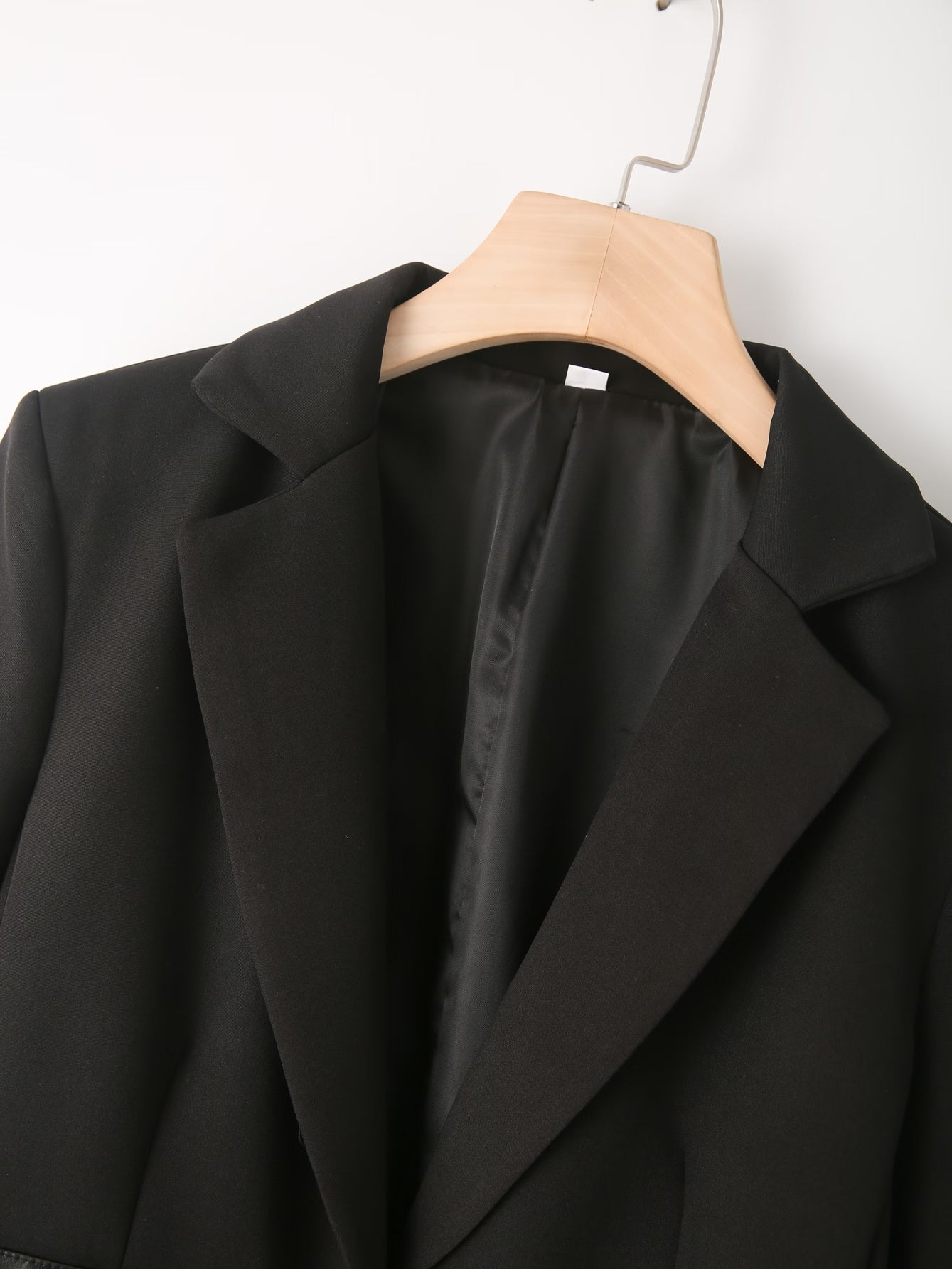 The Elegant Leather Patchwork One Button Black Blazer from TGC FASHION is a standout piece for fall 2024. Here’s a detailed description of this sophisticated item: