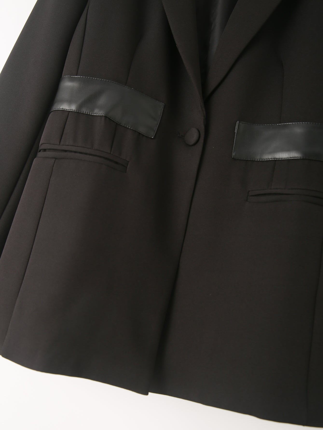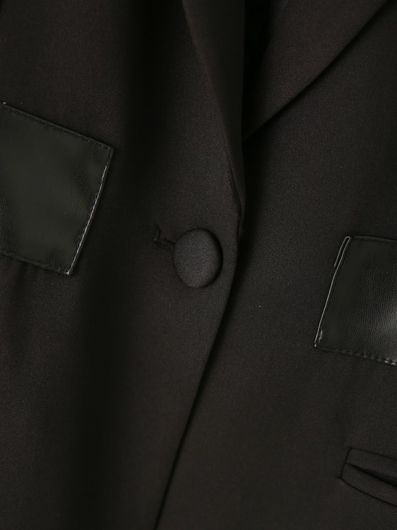 TGC Fashion Blazer Outfits, Elegant Leather Patchwork One Button Black Blazer