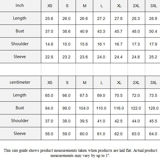 This size guide shows product measurements taken when products are laid flat. Actual product measurements may vary by up to 1".