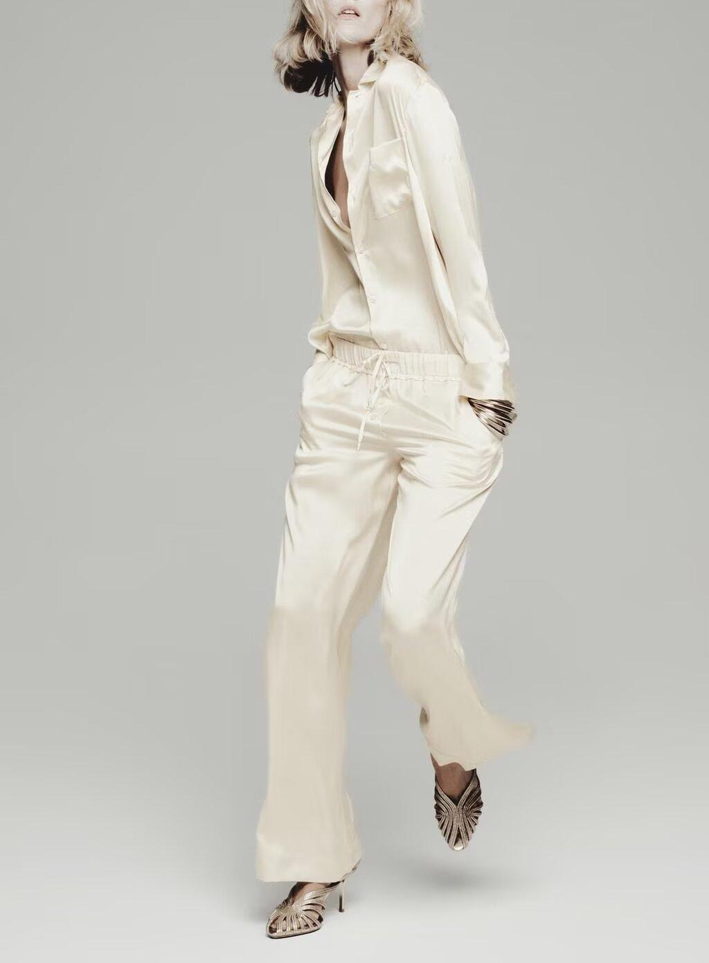 Crafted in featherlight silk with soft tailoring and functional pocket details, The Alora Set is effortless elegance in motion. The flowing button-up shirt pairs with relaxed, wide-leg trousers for a look that feels as luxurious as it is uncomplicated.