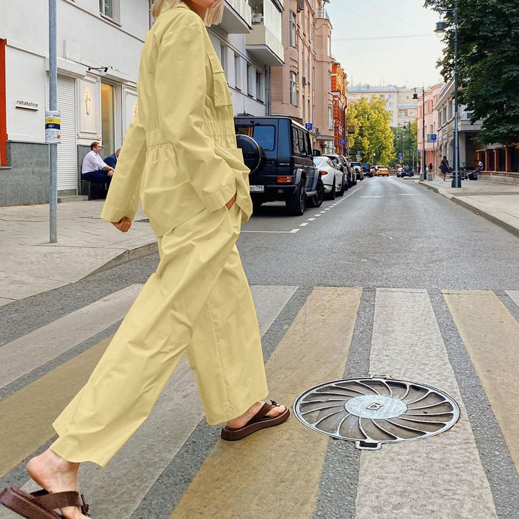 [The Joy Set] | Cotton Collared Waist-Tied Top & Wide-Leg Pants in Yellow | Spring/Fall Two-Piece by TGC – Trust God Claudia