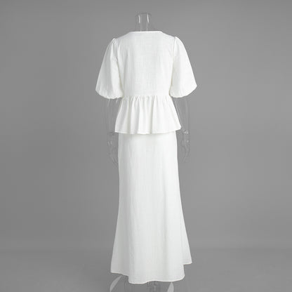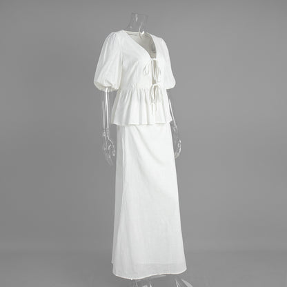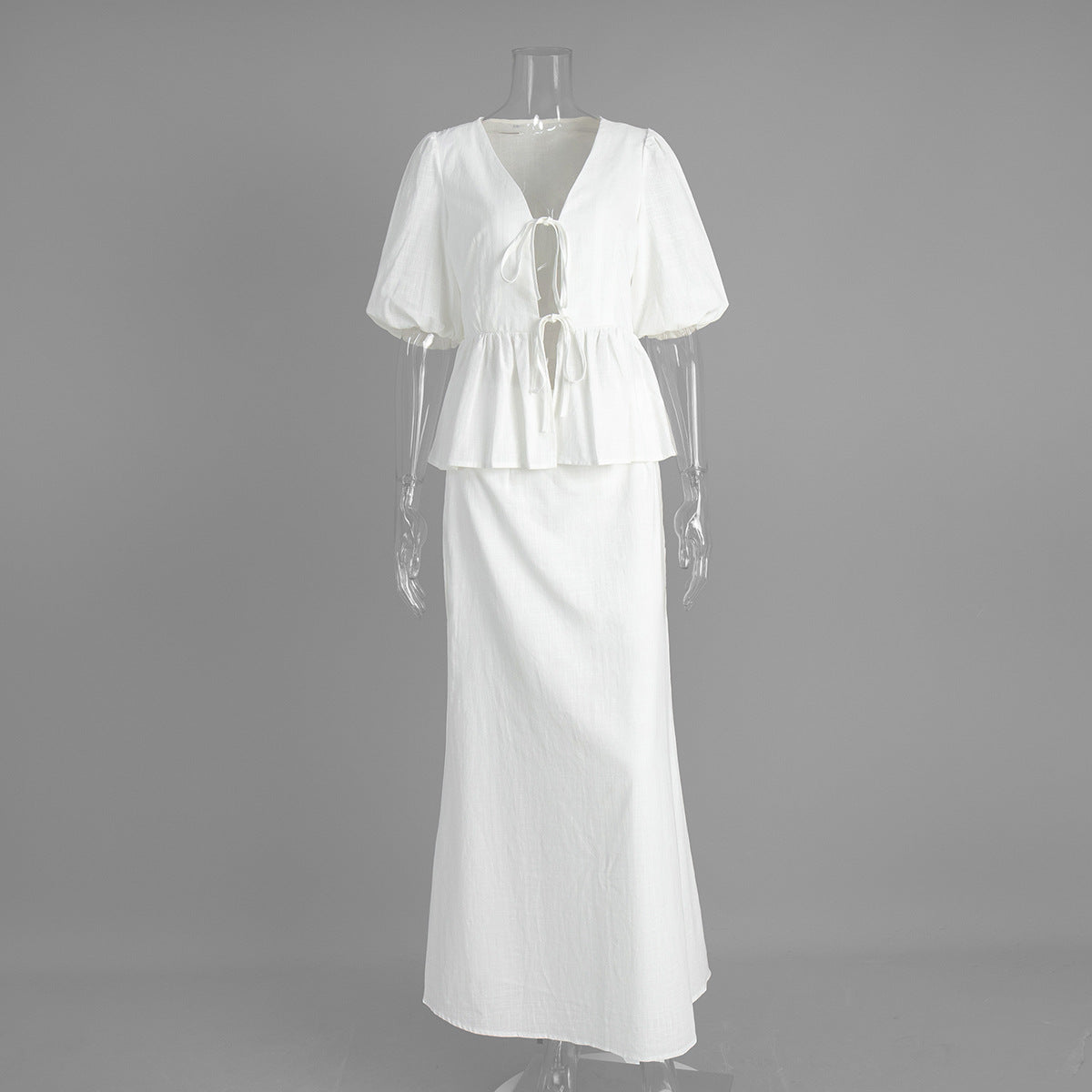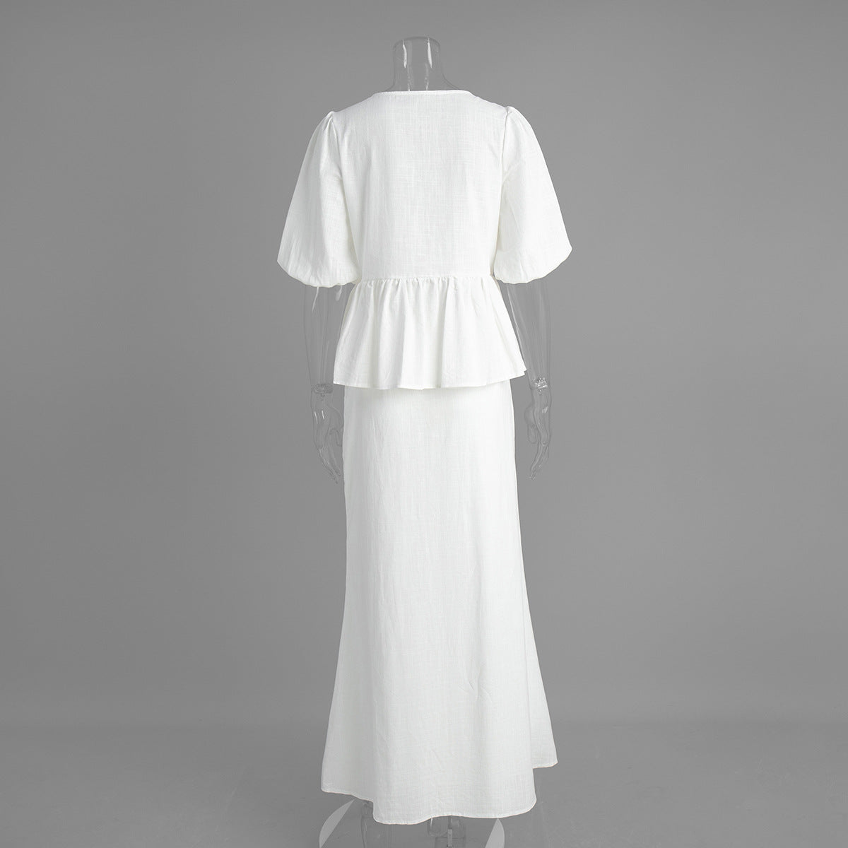 The Meadow Set – Puff Sleeve Shirt & Flowing Cotton Skirt for Slow Summer Moments