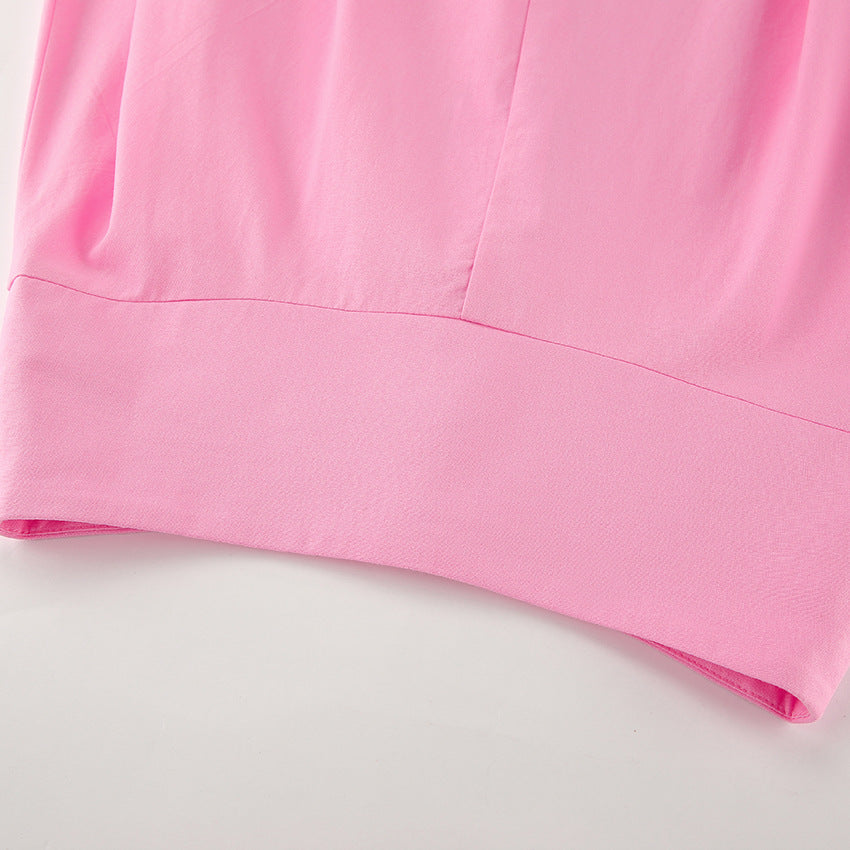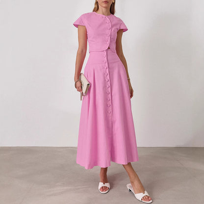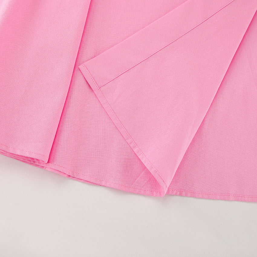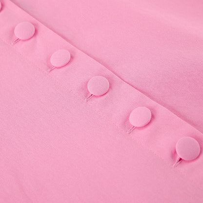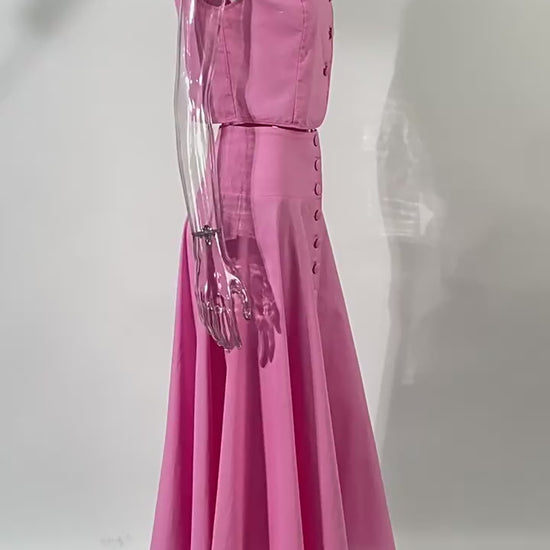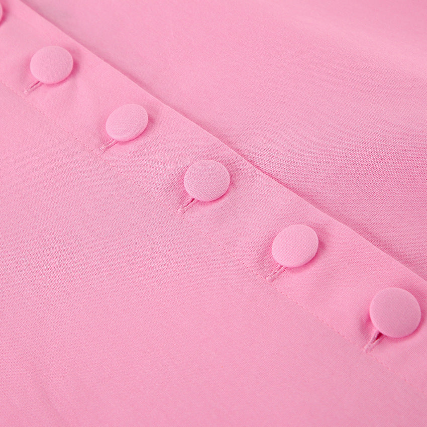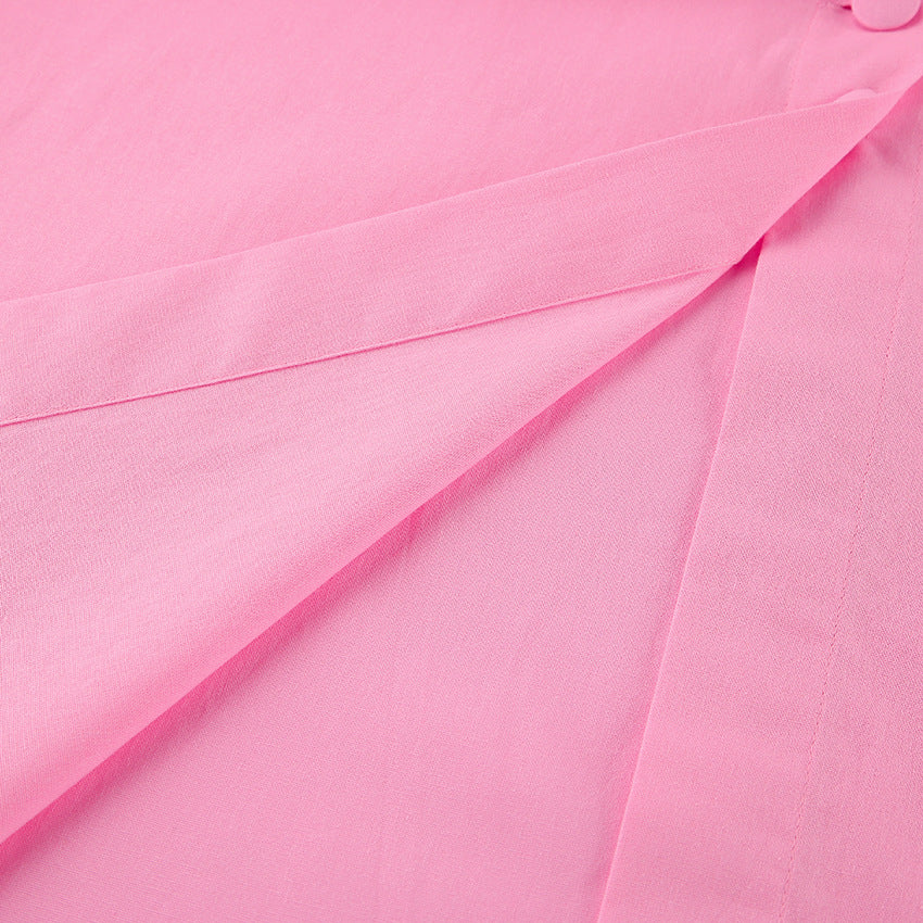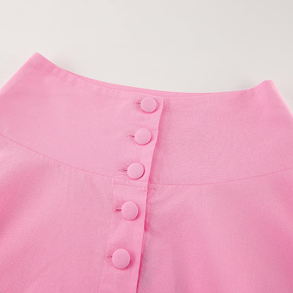 The Rosé Set – Pink Cotton V-Neck Top & High-Waist Skirt for Lighthearted Days