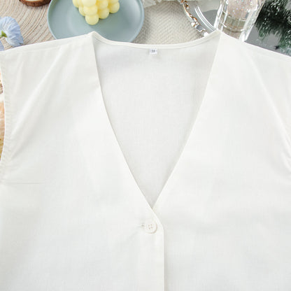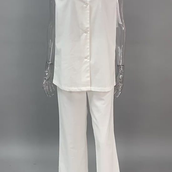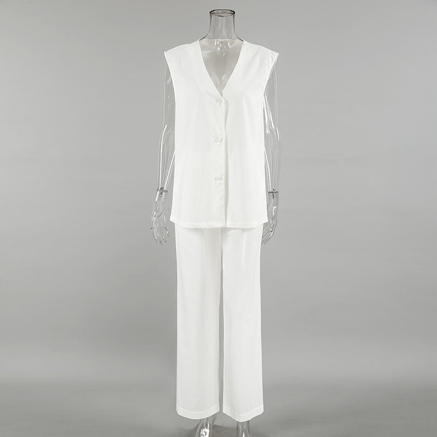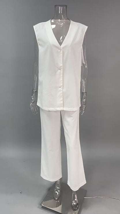 [The Selah Set] | White V-Neck Cotton Linen Vest & High-Rise Trousers | Casual Summer Two-Piece by TGC – Trust God Claudia