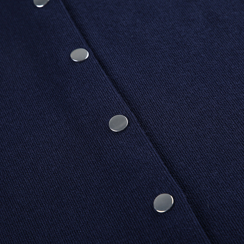 Simple, polished, and effortlessly refined — The Selene Dress is the embodiment of quiet sophistication. Crafted in a soft knit with a classic polo collar and single-breasted front, this short-sleeve dress in deep navy blue offers a sleek silhouette that flatters without fuss.