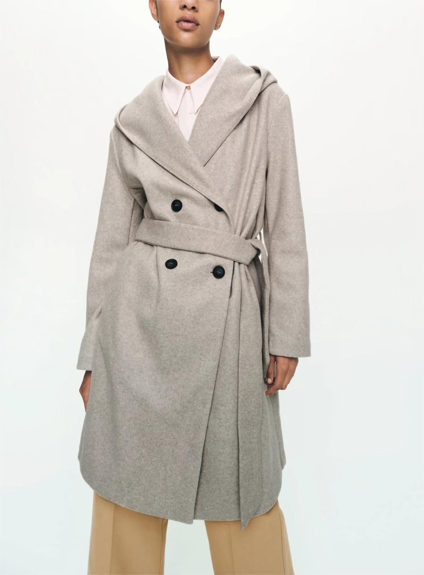 Trench coat Outfits | Blazer Hooded Trench Coat with belt
