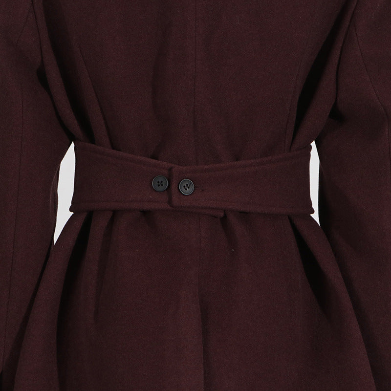 Winter Outfits | Capsule Wardrobe Elegant Burgundy Waist-Tight Top & Loose Wide-Leg Pants Two-Piece Set
