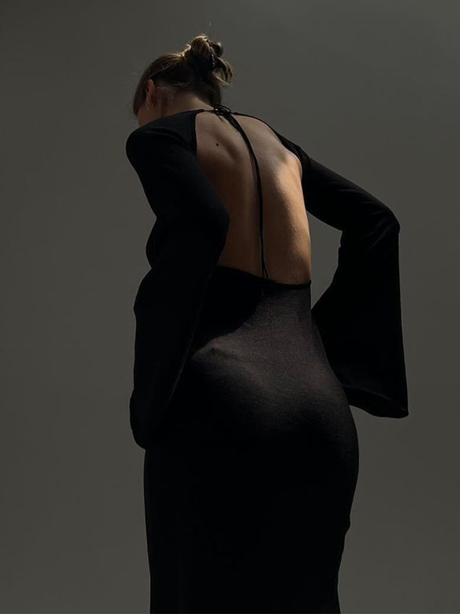 Introducing our Knitted French Backless Dress, a chic and alluring addition to your winter wardrobe. This dress combines style and comfort to keep you looking stunning during the cooler months.